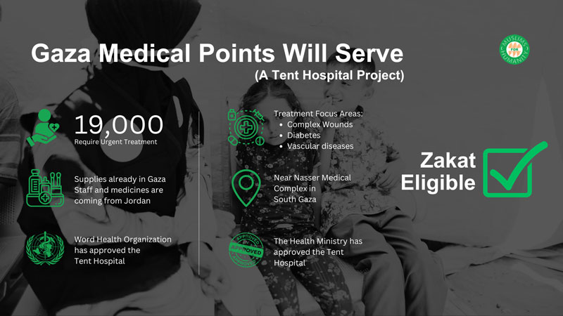 The healthcare crisis in Gaza has reached alarming levels, with 32 out of 36 hospitals damaged and 20 currently non-functional. Overcrowded hospitals are struggling to serve a population of 1.5 million, of whom 40% are children under the age of 10. In response, the Gaza Medical Points Project is working to establish specialized medical points near the Nasser Medical Complex to deliver essential care for chronic conditions, including diabetes, vascular diseases, and advanced wound care. The project will include 4 outpatient units dedicated to diabetes care, vascular care, wound care, and nutritional support, along with an inpatient facility offering 8 surgical beds.